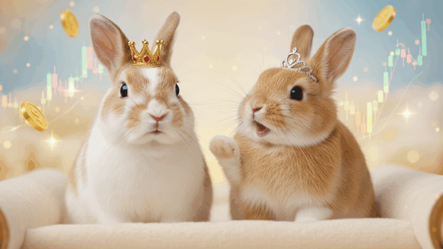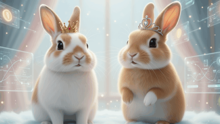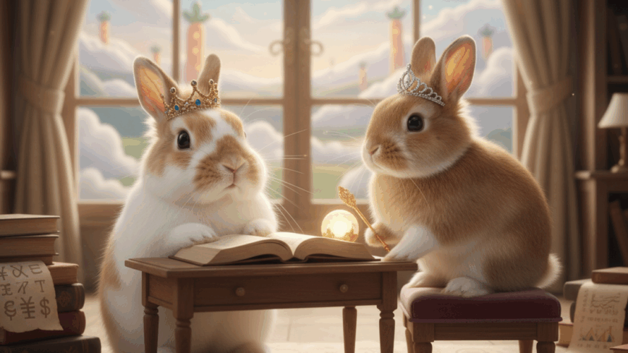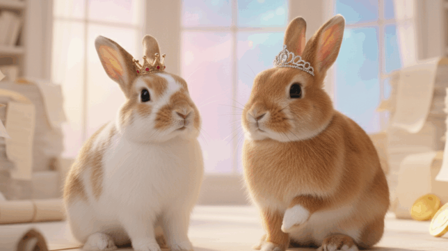 宇宙のどこかに、何もかもがふわふわしている「ふわふわ星」がありました。この星の通貨は、甘くて美味しい「ニンジン」。星の民であるうさぎたちは、賢くて優しい「てち王」と、元気いっぱいの妹「ちろ姫」のもとで、平和に暮らしていました。今日も、王の執務室では、未来の女王になるべく、ちろ姫が経済のお勉強に励んでいるようです。 ちろ姫: 「えっへん!てち兄様!あたち、もう完璧に理解したでしゅ!」 ぴょん!と効果 […]