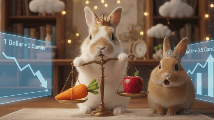 プロローグ:おやつの悩みと魔法のニンジン畑 宇宙のどこかにある、何もかもが「ふわふわ」な惑星、ふわふわ星。ここの通貨はニンジンです。今日も、この星のプリンセスであるちろ姫は、悩んでいることがあるようです。 ちろ姫:「う〜ん…あたちのニンジン、すぐに干し草やりんごになっちゃう…。もっとたくさんおやつが食べたいのに、どうしてニンジンは増えないのかしら?ぴょんぴょん!」 元気いっぱいに飛び跳ねるちろ姫。 […]