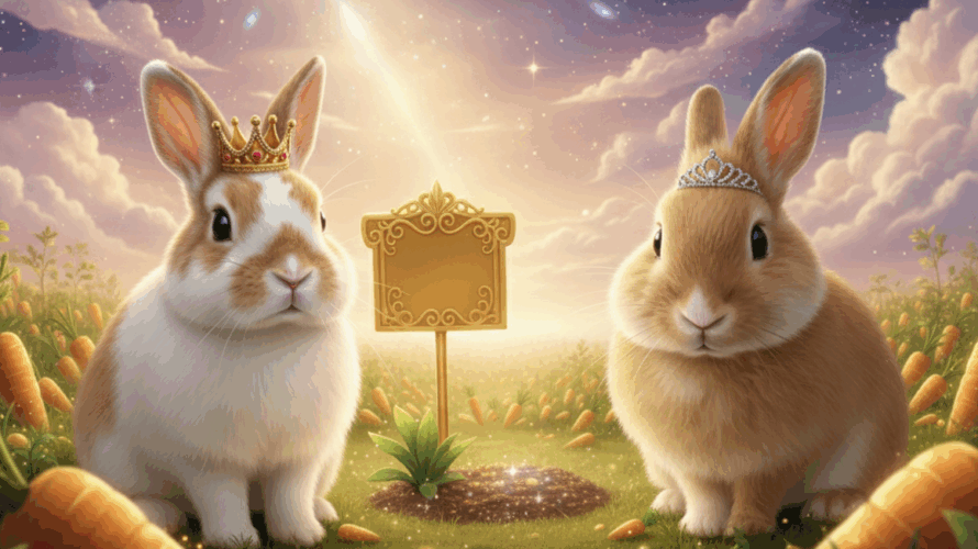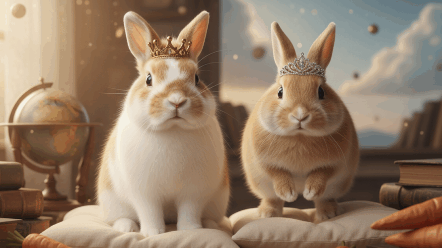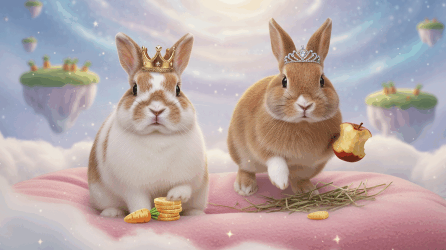 宇宙のどこかにある、何もかもがふわふわな惑星、その名も「ふわふわ星」。この星の通貨は、甘くて美味しい「ニンジン」です。 ある晴れた日の午後、ふわふわ星の王宮では、いつものように穏やかな時間が流れていました。玉座で山積みのニンジン書類に目を通すのは、この星の若き王「てち王」。その傍らでは、妹の「ちろ姫」が、干し草のクッキーをもしゃもしゃと食べながら、ぴょんぴょんと跳ね回っています。 そんな平和な光景 […]