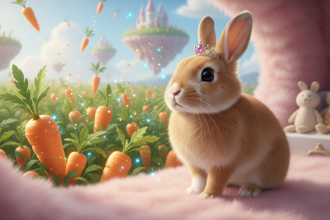 てち王: 「ほう、ちろ姫。いつも干し草をねだるか、ぴょんぴょん跳ねているだけかと思っておったが、感心な心がけであるな。して、何を始めたいのだ?」