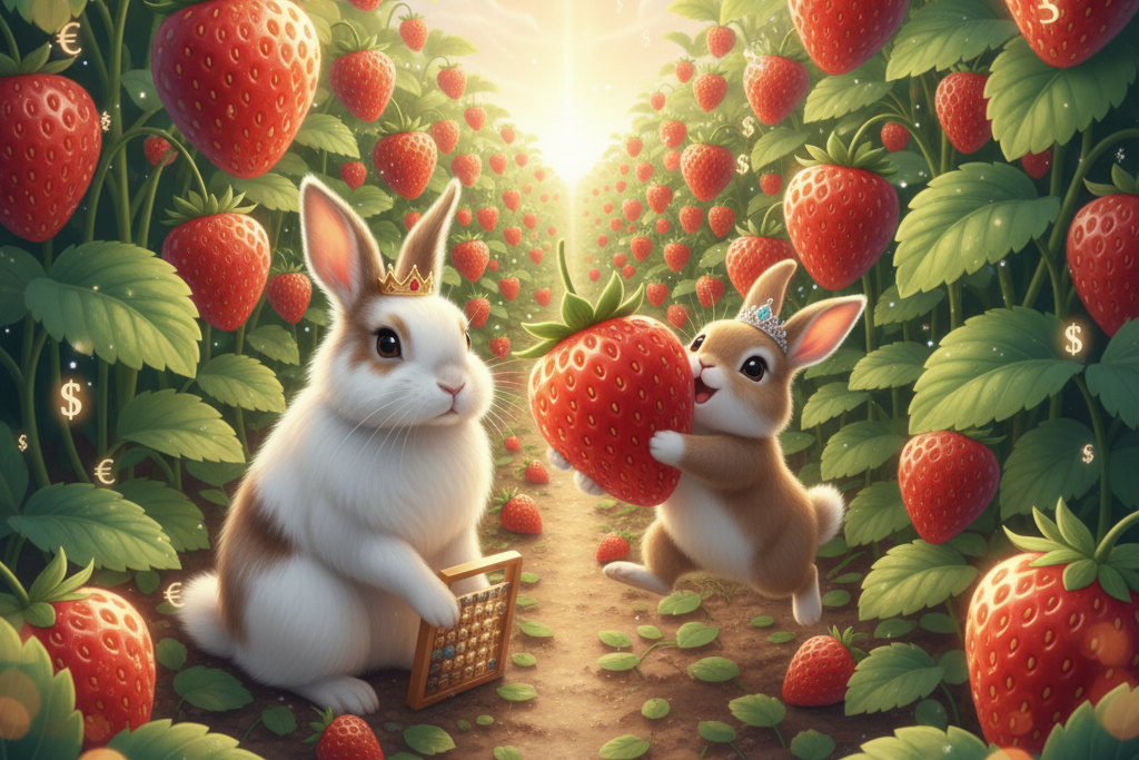 てち王:「若いうちは、畑に『高級イチゴ』のような果実を多めに植えるのが良いじゃろう。『株式』と呼ばれるものじゃな。これらは育つのが速いが、嵐が来ると傷みやすい。じゃが、若いお前たちには時間がある。たとえ嵐で一度ダメになっても、また植え直して大きく育てられるからの。そして『複利』という魔法を使えば、実ったイチゴがまた新しいイチゴを育て、時間が経つほどに畑は豊かになるのじゃ」