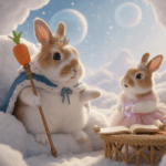 宇宙のどこかにある、何もかもが“ふわふわ”な惑星、その名も「ふわふわ星」。この星では、立派なニンジンが通貨として流通しています。今日の主役は、この星のプリンセス「ちろ姫」。おやつの干し草をもしゃもしゃしながら、何やら考え込んでいるようです。