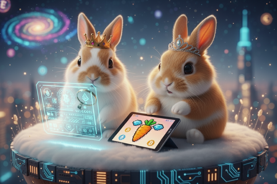 てち王: 「そうだ。例えば、ちろ姫の食べ残しの干し草の画像に、朕が『これは、ちろ姫が最初に残した由緒正しき干し草の画像である』というデジタルな印鑑を押してやったとしよう。この印鑑は『ブロックチェーン』という、全宇宙のうさぎが監視している絶対に改ざんできない台帳に刻まれる。すると、ただの画像データが、『ちろ姫公認・世界に一つの干し草アート』という、なんだか凄そうなものに化ける。これがNFTの正体だ。」