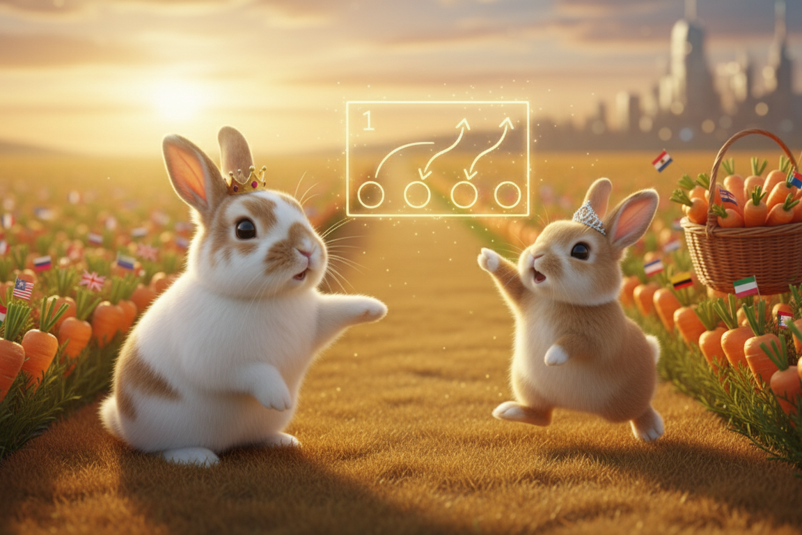 てち王: 「もう一つは、『全世界株式(通称:オルカン)』に連動するファンド。これは、『アメリカの騎士団も含め、ヨーロッパ、日本、アジアなど、世界中のうさぎ騎士団すべて』に投資するようなものじゃ。一つ一つの国の力はアメリカに及ばないかもしれんが、全世界に散らばっているから、どこかの国が不調でも他の国がカバーしてくれる。究極の分散投資と言えるだろう。安定感は抜群じゃが、成長力は良くも悪くも『世界平均』になる」