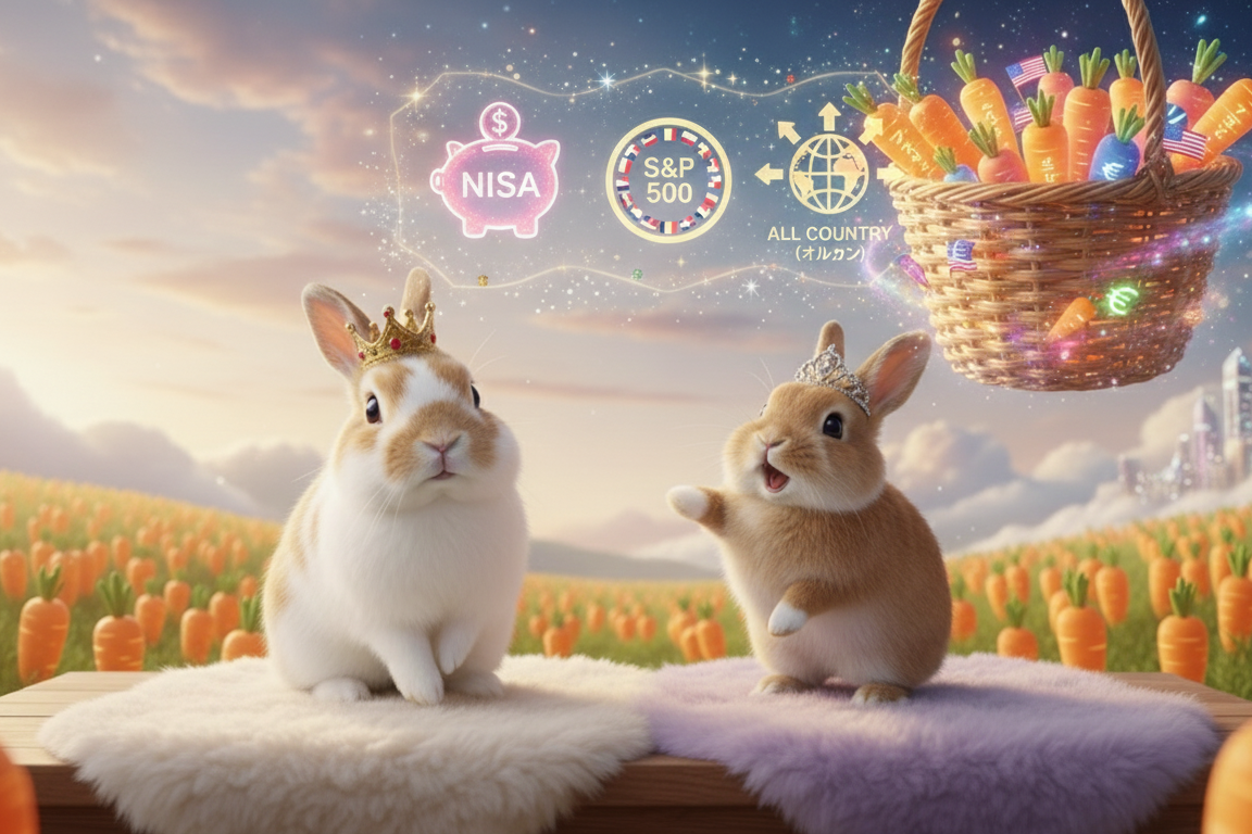 てち王: 「どちらが正解、というわけではないのだよ。未来のことは誰にも分からんからな。朕個人の意見を言うならば、世界の中心であるアメリカの力を信じるならS&P500。いやいや、これからはアメリカ以外の国も伸びてくるはず、全てに賭けておきたいと思うなら全世界株式じゃ。大切なのは、どちらかを選んだら、あとはコロコロと方針を変えずに、どっしりと構えて畑の成長を見守ること。うさぎは臆病な生き物だが、投資においては、嵐が来てもぴょんぴょん逃げ出さず、じっと待つ『胆力』が試されるのじゃ」
