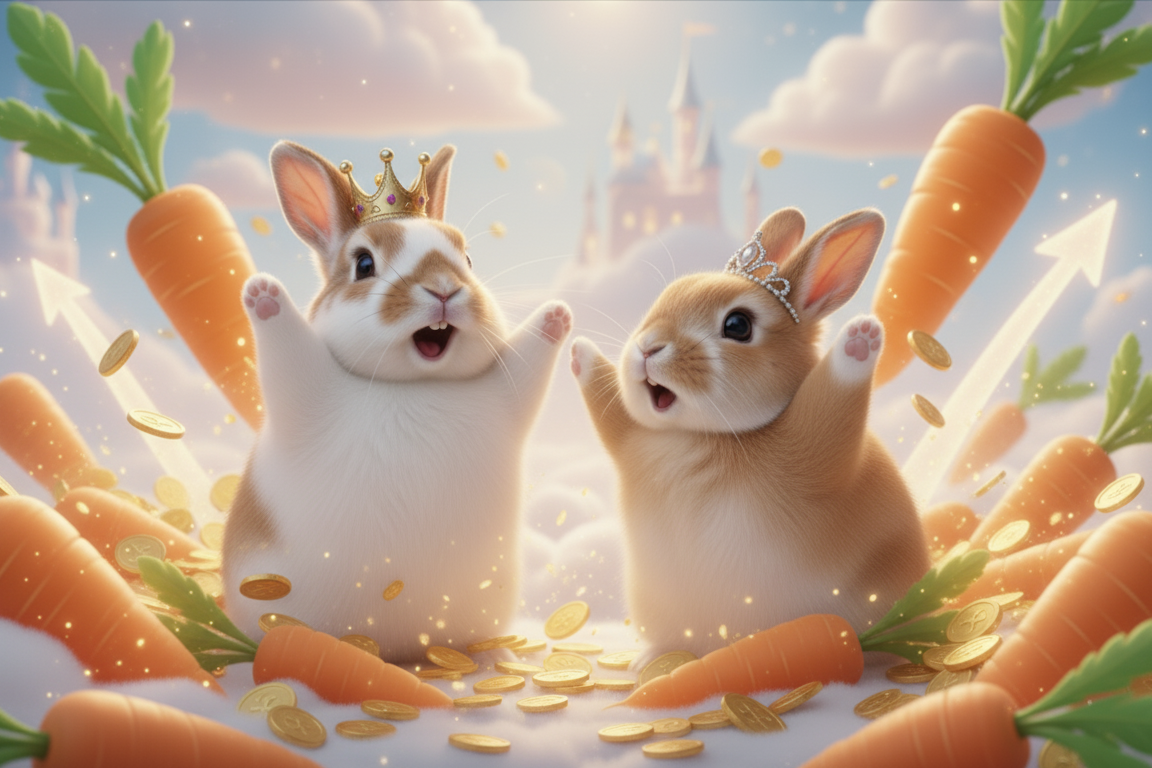てち王:「ははは。食べるものではないが、上手くいけば、ちろ姫が大好きなリンゴを山ほど買えるくらい、たくさんのニンジン(ふわふわ星の通貨)を手にすることができる、魔法のような仕組みなのだ。」