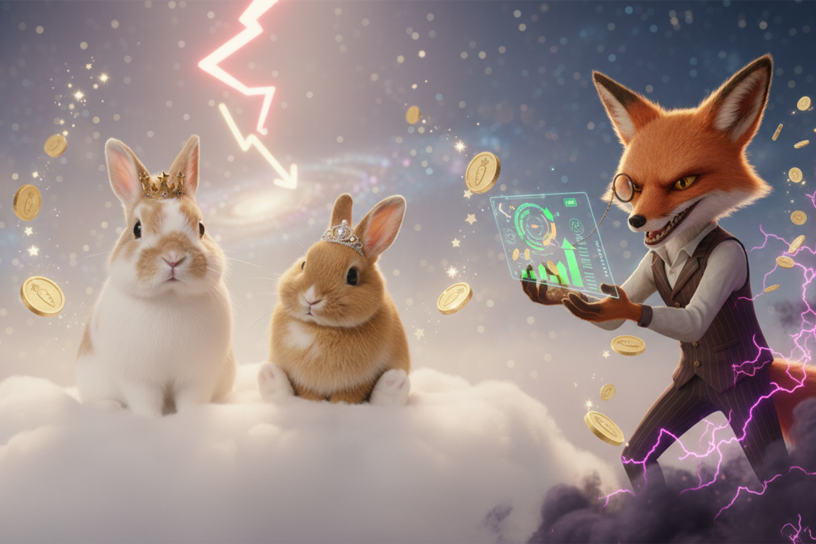 コンコン・フォックス:「ちろ姫様、良いところに来たコン!ニンジン安の今こそ、一瞬で大金持ちになるビッグチャンスだコン!王様の言うような長期投資なんて、亀の歩くようなもの。これからはスピードが命だコン!」
