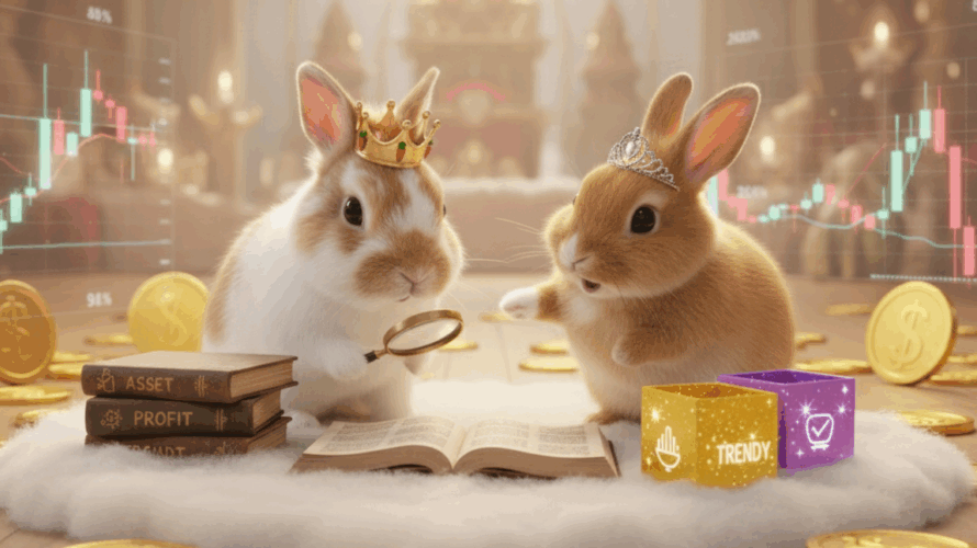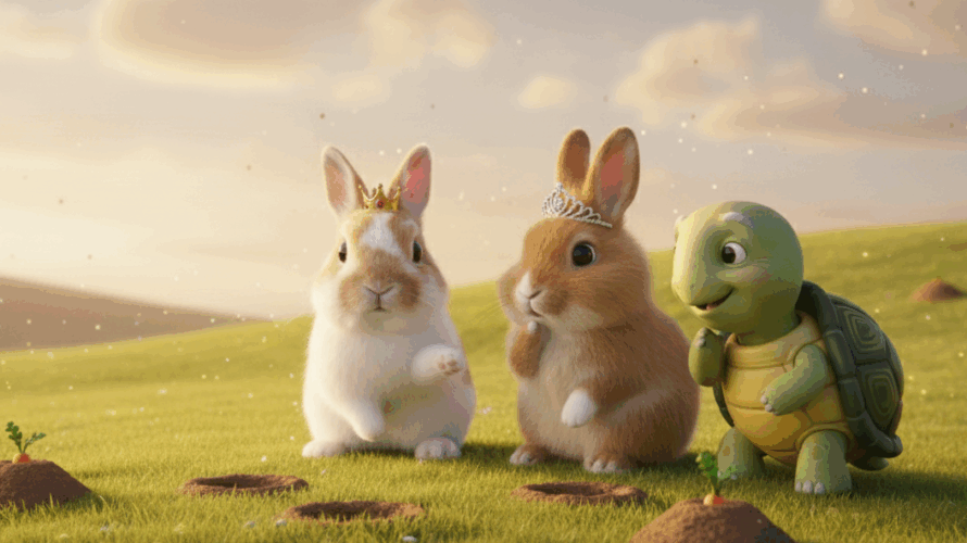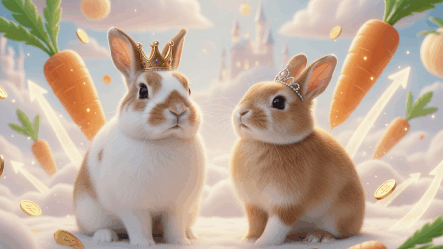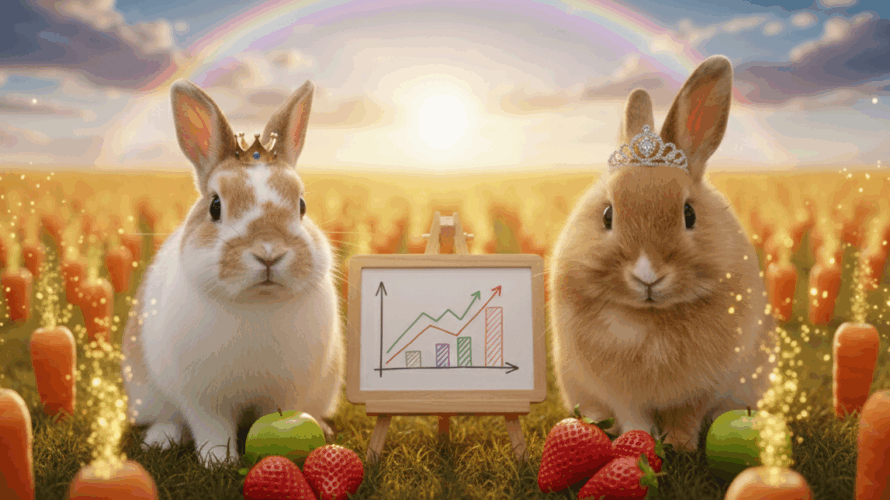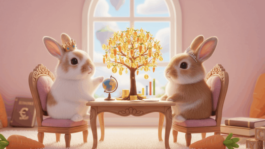 宇宙のどこか、なにもかもが「ふわふわ」でできている惑星、ふわふわ星。 この星では、王様もお姫様も、みんなフワッフワのうさぎです。 通貨はなんと「ニンジン」。今日もこの平和な星で、経済と金融をめぐる、兄妹の可愛らしい(でも、とても大切な)お話が始まるようです。 プロローグ:せっかち姫の願い ちろ姫: 「てち王お兄様〜!あたち、今すぐリンゴがたくさん食べたい!明日にはお城が立つくらい、ニンジンをいーっ […]