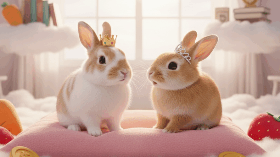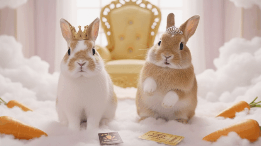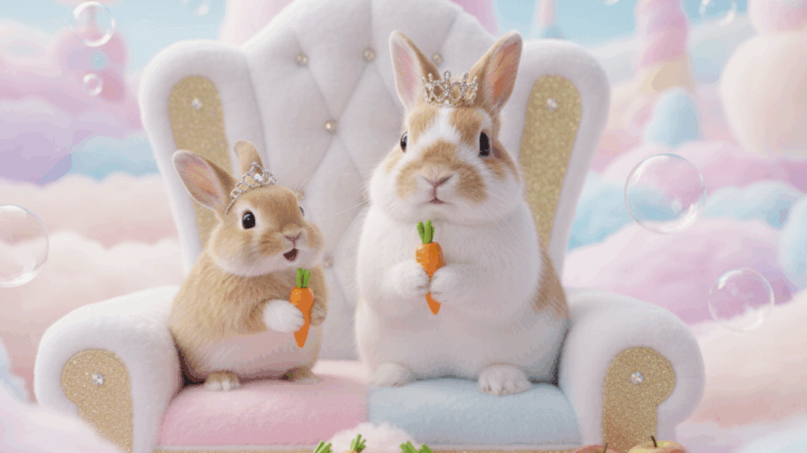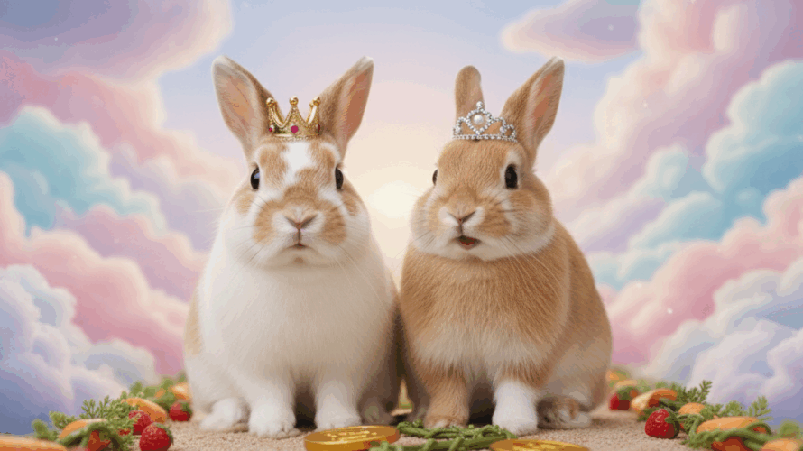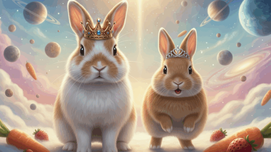 宇宙のどこか、なにもかもが綿菓子のようにふわふわな惑星、その名も「ふわふわ星」。この星では、王族のうさぎたちが、今日も元気に過ごしています。しかし、今日のふわふわ星王宮は、少しだけ様子が違うようです。なにやら、経済を揺るがす(?)大きな議論が始まろうとしていました。 事件は山盛りのニンジンから始まった その日、ちろ姫は満面の笑みで、てち王の執務室に飛び込んできました。その小さな両手には、抱えきれな […]