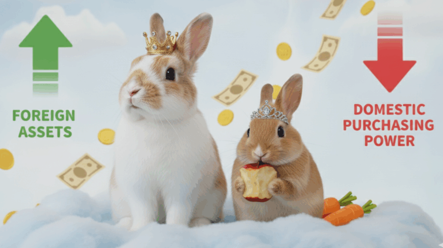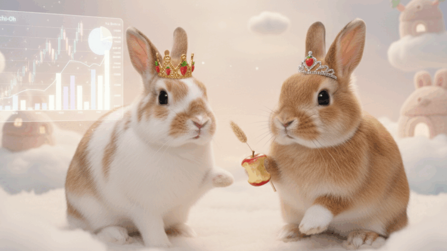 宇宙のどこかにある、何もかもが“ふわふわ”な惑星、その名も「ふわふわ星」。この星では、王様である「てち王」の優しい統治のもと、うさぎの民たちが平和に暮らしていました。通貨はもちろん、彼らの大好物である「ニンジン」です。しかし、そんな平和な星にも、地球から届く経済ニュースの波は容赦なく押し寄せるのでした…。 忍び寄る「利上げ」の影と甘い誘惑 ちろ姫: 「う〜ん…あーん!もぐもぐ…やっぱり干し草りんご […]