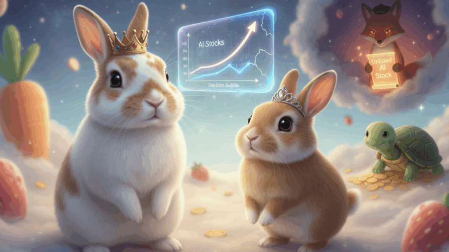 プロローグ:ふわふわ星に吹く、新しい風 宇宙のどこかにある、何もかもがふわふわな惑星「ふわふわ星」。そこに住むうさぎたちは、今日も元気にニンジン畑を耕し、穏やかな毎日を過ごしていました。 おや、あそこにいるのは、ふわふわ星のプリンセス、ちろ姫様ですね。何やらぴょんぴょん跳ねて、とってもご機嫌な様子。どうしたのでしょうか? ちろ姫:「あたち、聞いたんだ!『えーあい株』っていうのを買えば、おやつが山ほ […]