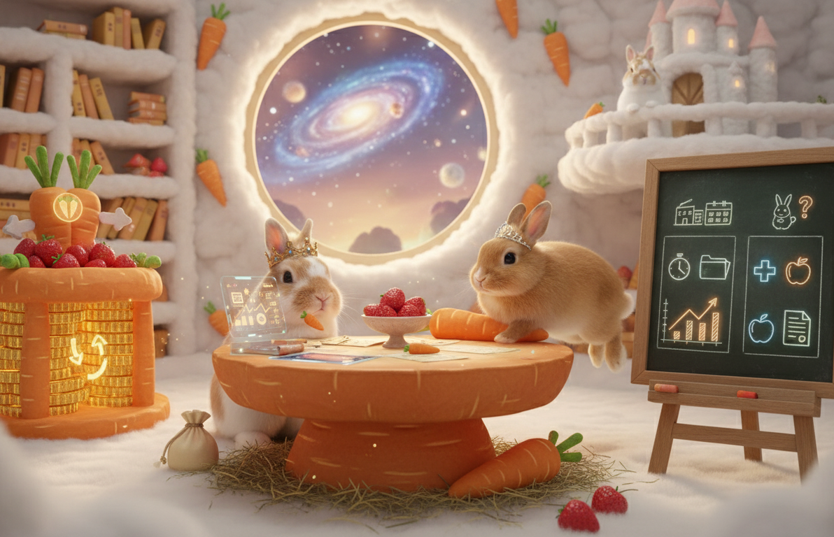 宇宙のどこかにある、何もかもがふわふわな惑星「ふわふわ星」。そこに住むうさぎたちは、今日も元気にニンジン通貨を稼いでいます。さて、今日のお話は、様々な星の住人が集まる「星間マーケット」から始まります。 星間マーケットの誘惑 ちろ姫「わーい!マーケット、マーケット!てち王兄様、あっちのお店の『星屑りんご飴』、とっても美味しそうであたちを呼んでる〜!ぴょんぴょん!」 元気いっぱいのちろ姫は、兄であるて […]