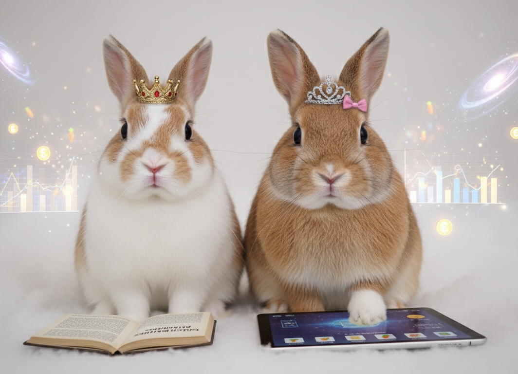宇宙のどこか、パステルカラーの雲海に浮かぶ、何もかもがふわふわな惑星「ふわふわ星」。この星を知性と品位で統べるのは、雪のように白い毛並みに威厳を宿すうさぎ、「てち王」。そして、その傍らで次代の王女として帝王学を学ぶ、元気いっぱいの妹君「ちろ姫」。 今日のふわふわ城では、ちろ姫が愛用の「ニンジンフォン」を片手に、何やら小さなため息をついているようです。 ちろ姫: 「うーん…この『銀河系うさぎブランド […]
