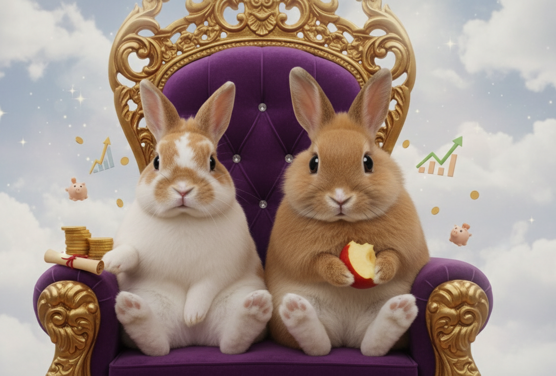 はじまりは、おやつの時間 ここは、宇宙のどこかにある、綿菓子のように甘くてふわふわな星、「ふわふわ星」。 この星を治めるのは、白と茶色の毛並みがとってもゴージャスな、うさぎの王様「てち王」です。てち王は星のことなら何でも知っていますが、特に詳しいのは人間たちが暮らす「地球」の経済や金融について。その知識は、どんな専門家も舌を巻くほど。 今日も、てち王は歳の離れた妹の「ちろ姫」におやつをあげていまし […]